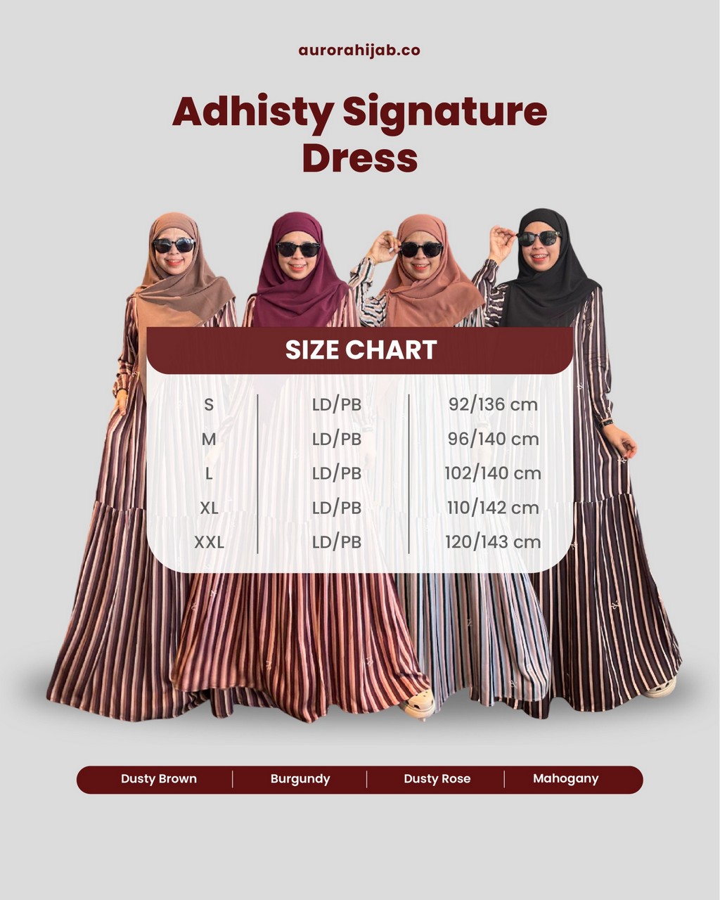 Dilengkapi aksen 2 kantung depan dengan bordir eksklusif Aurora Hijab, menjadikannya bukan sekadar dress biasa, tapi piece spesial yang penuh detail β¨